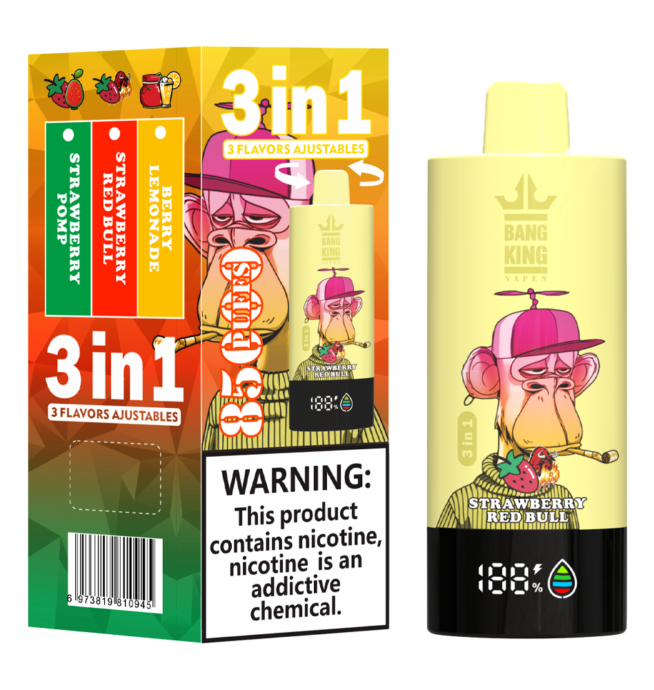 BANG KING Triple 85000 Puffs 3 in1 je perfektný spoločník pre milovníkov rozmanitosti – trojnásobný príchuťový systém umožňuje rýchlu zmenu 3 unikátnych príchutí podľa nálady, ideálny pre jednorázovú e-cigaretu na cestovanie po Slovensku alebo relaxáciu doma s priateľmi.
